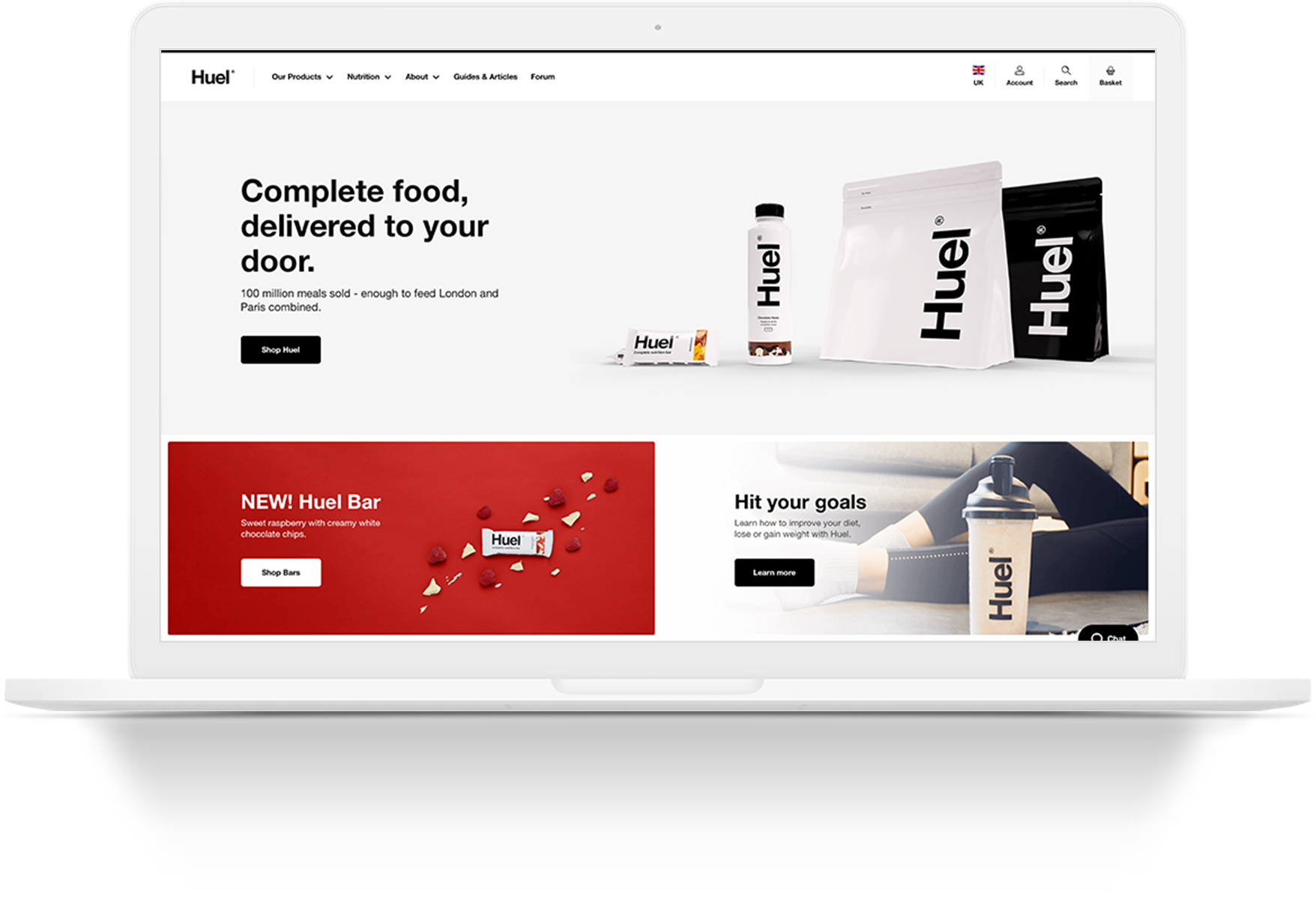 Huel is a meal replacement available in powder, liquid, bar, or grain forms. Huel's first product is made from oats, rice protein, pea protein, sunflower, flaxseed, coconut oil MCTs, and several dietary supplements. Huel offer nutritionally complete meal replacement shakes and use Shopify to power their entire ecommerce ecosystem. From one-time orders, upselling, free gifts and subscription orders - shopify servers at the very center of their business.