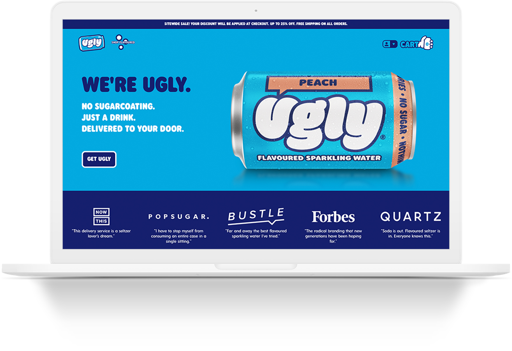 Ugly Drinks founders Hugh Thomas and Joe Benn want to change the way people think about fizzy drinks with their sparking water brand. The website design shows the versatility of customer design and development on the Shopify platform.